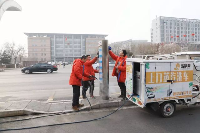 在啟動儀式結束后,乾港集團逸掌幫蒸汽洗車秉承“環(huán)保、微水、上門、貼心、便捷、尊貴車主,越洗越亮”的國際先進蒸汽清洗服務方式,為秦皇島主要街道的路名牌、公交站牌、街頭座椅、綠化柵欄、交通護欄等進行了擦洗,為城市“清洗面容”。